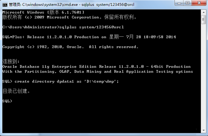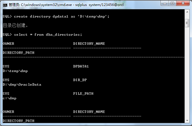1、sql>create directory dpdata1 as 'D:/temp/dmp';這僅僅是在oracle里設(shè)定的目錄,并沒有真正創(chuàng)建