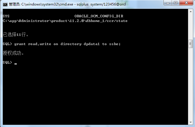 3、賦于要導(dǎo)出數(shù)據(jù)表的所屬用戶權(quán)限 sql>grant read,write on directory dpdata1 to sshe;