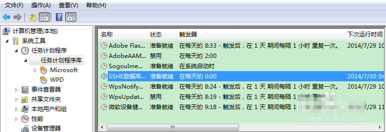 4、右鍵我的電腦:管理——任務(wù)計(jì)劃程序——任務(wù)計(jì)劃程序庫,可以看到剛才添加進(jìn)去的定時(shí)任務(wù)