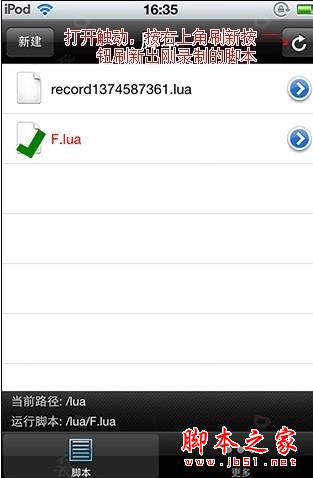 3、然后我們打開觸動(dòng)精靈,點(diǎn)擊右上角的刷新按鈕,就會(huì)刷新出你剛才錄制的腳本;
