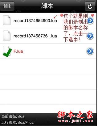 4、如下圖,注意剛錄制的腳本,只要點(diǎn)擊一下就可以選中了;