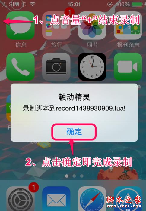 2、看下圖,等你 感覺錄制好了后,再按一下【音量+】,就可以結(jié)束錄制,并且會(huì)提示你錄制腳本的放置目錄