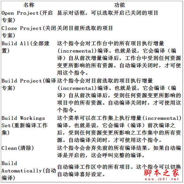 「項目」菜單可以對工作臺中的項目執(zhí)行動作(建置或編譯)。