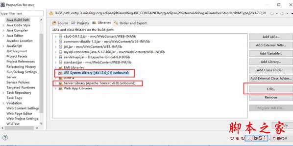4、導(dǎo)入java web項(xiàng)目出現(xiàn)JRE System Library(unbound)和Server Library(unbound)解決方法