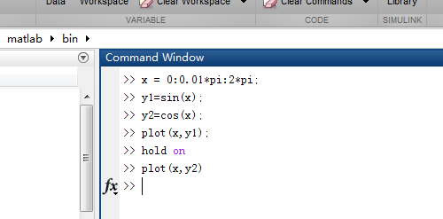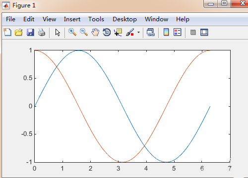 1、下面將以一個簡單的繪圖操作為例。繪制0到2*pi范圍內(nèi)的正弦余弦函數(shù),默認的圖形是實線,顏色第一條是藍色,第二條紅色...