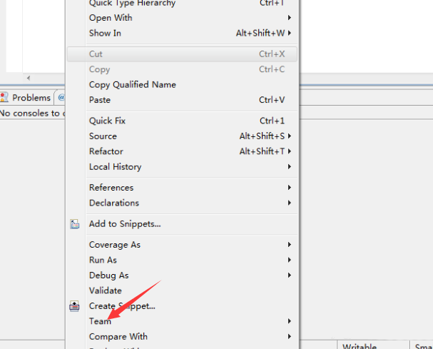2、在這個文件右鍵后彈出了下拉菜單中進行選擇為team的選項菜單。