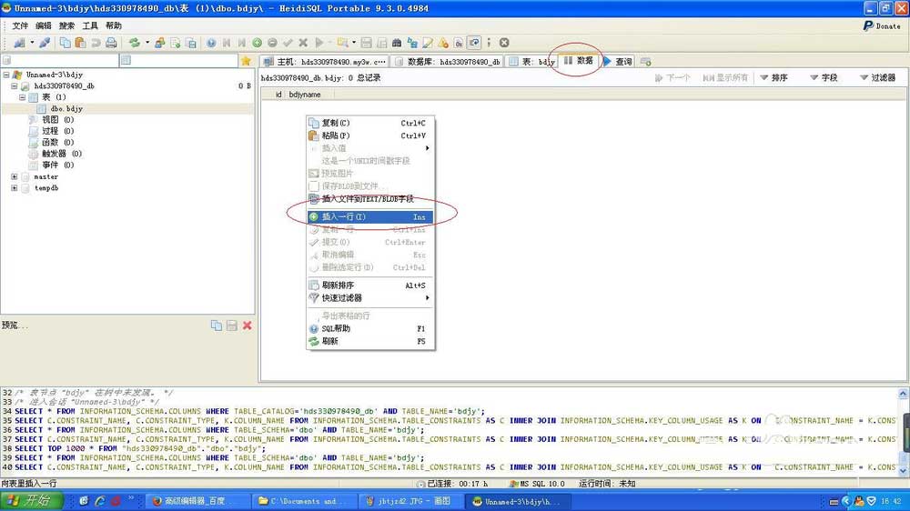 Heidisql連接sql server數據庫并做增刪改操作的方法: