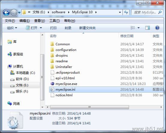 切記:安裝目錄不要出現(xiàn)帶空格的文件夾 就以自家電腦作例子,我的MyEclipse安裝在E:/software里面