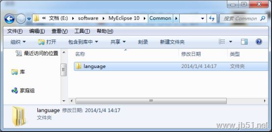1:把漢化包里的language的文件夾復(fù)制到MyEclipse 10里面的Common文件夾里(一般里面是沒有Common這個文件的,如果沒有自己創(chuàng)建一個)。