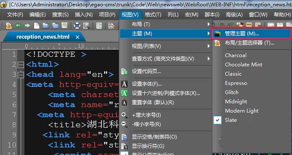 4、我們也可以自己來新建主題,點擊“視圖->主題->管理主題”,如下圖所示: