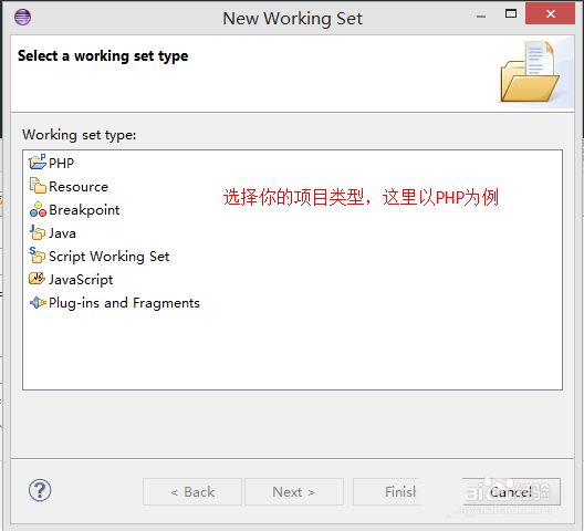 6、選擇你的項(xiàng)目類(lèi)型(因?yàn)槲夜ぷ骺臻g已經(jīng)有幾個(gè)PHP項(xiàng)目,這里以PHP為例),雙擊PHP文件夾,你的項(xiàng)目會(huì)全部列出來(lái),選擇好項(xiàng)目之后,在上面的輸入框內(nèi)隨便輸入一個(gè)名稱(chēng),點(diǎn)擊Finish,最后點(diǎn)擊Search搜索即可。