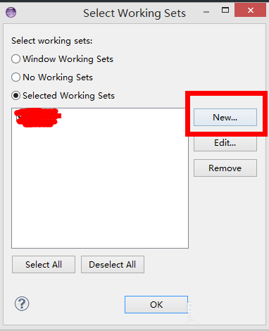 5、選擇文件的范圍,默認(rèn)為整個(gè)工作空間,可以點(diǎn)擊右邊的choose自定義,在彈出的窗口中點(diǎn)擊New...;