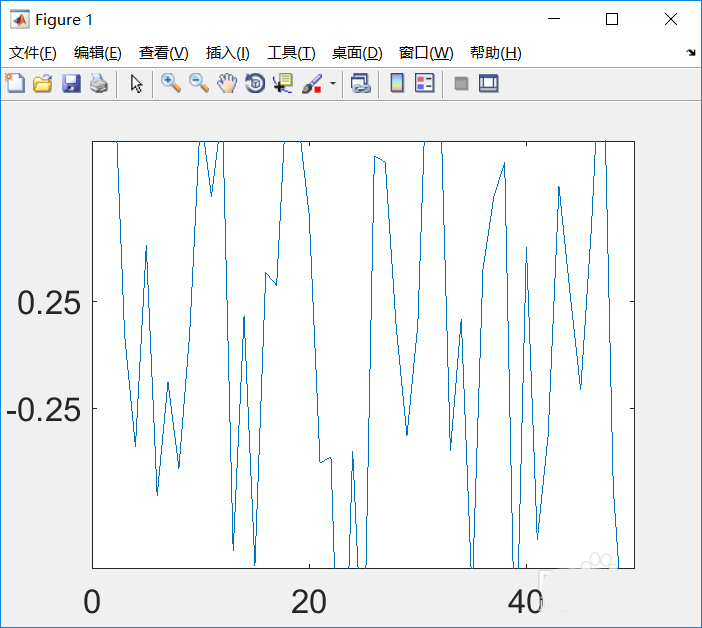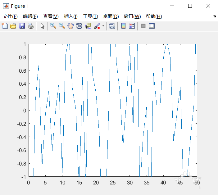 2、使用axis命令可以自行修改坐標軸的范圍。如:axis([0 50 -1 1]);