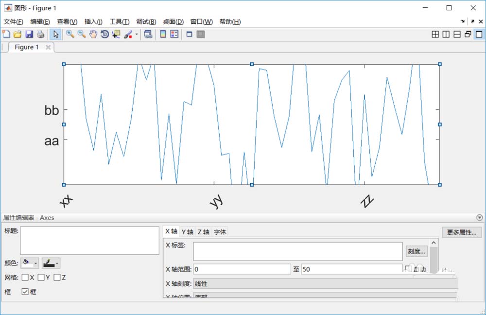4、當然也可以修改標注的字:set(gca,'Xticklabel',{'xx','yy','zz'},'Yticklabel',{'aa','bb'});