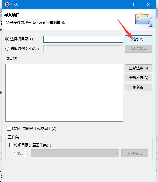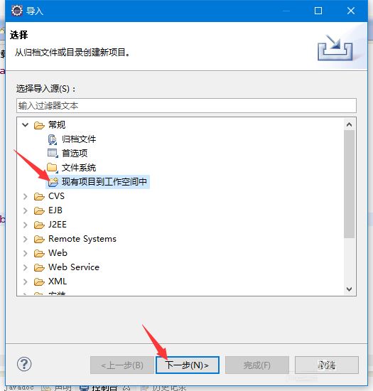 3、選擇“現(xiàn)有項(xiàng)目到工作空間中”——“下一步”