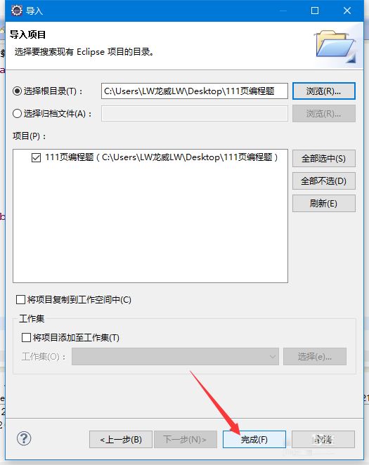 4、“瀏覽“——選擇要導(dǎo)入的項(xiàng)目文件路徑——”完成“