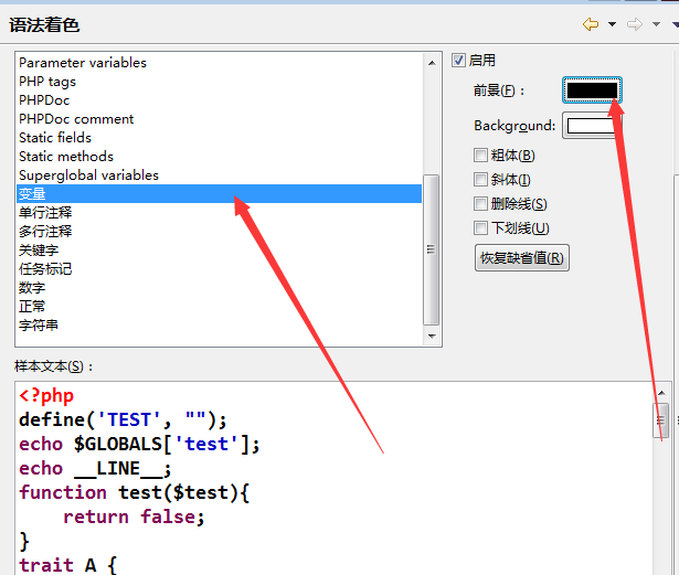 zend studio怎么修改html文件中PHP代碼顏色?