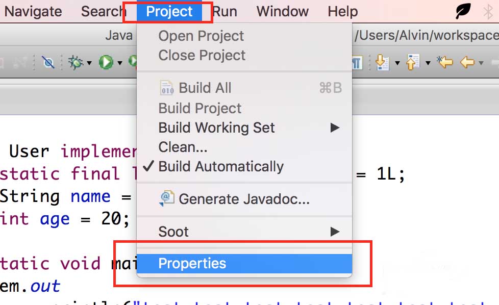 2、進入工程屬性設置頁面。點擊菜單上的"Project(工程)"->"Properties(屬性)",進入工程屬性的設置頁面