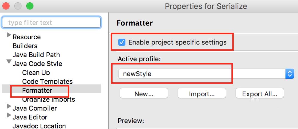 6、應用和保存自定義設。檢查Active Profile(當前配置)已經是剛剛新建的newStyle,再點擊"Apply(應用)"以及"Ok(好的)"。這個時候再使用快捷鍵ctrl+shift+f將會應用新自定義的風格來截斷過長的代碼行。