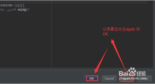 6.最后記得點(diǎn)擊“apply” 和“OK”,在這里小編也為大家一下如何修改字體的大小,詳細(xì)的可以查看一下經(jīng)驗(yàn)