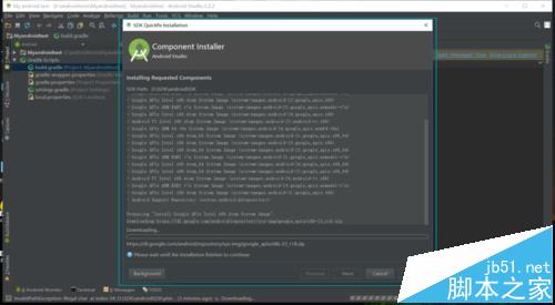 7、選擇模版后,點擊“Finish”完成所有屬性的設置,開始進行新建項目的組建,Android studio會回到初始頁面,并開始新建的進程。