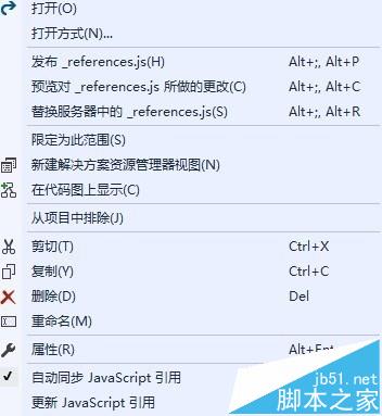 1)scripts文件下增加_references.js空白腳本文件.然后你會看到右鍵菜單多了兩個選項.