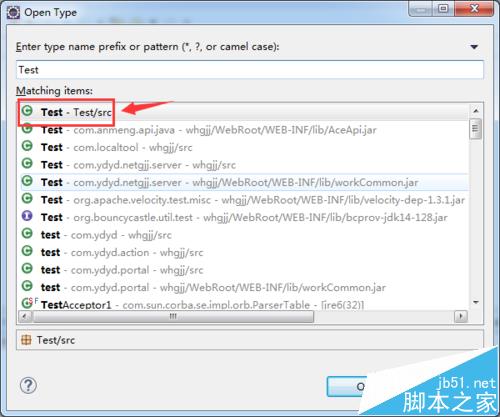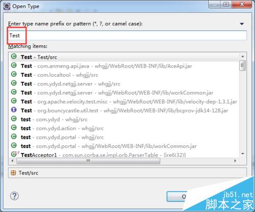 2、輸入類名,下方會(huì)同步顯示出相關(guān)的類,以及他們的路徑。