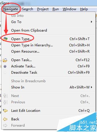 1、打開eclipse主頁面,點(diǎn)擊【Navigate】菜單,選擇【Open Type】選項(xiàng)