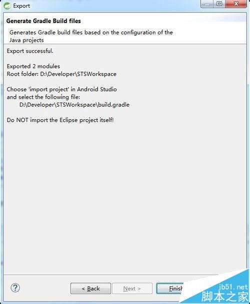 3、點擊finish,第一次導(dǎo)入不會報什么錯誤,第二次導(dǎo)入的時候會報一個異常,大體就是你選擇的文件已經(jīng)生成了gradle文件,所以你要選擇下面的一個復(fù)選框就是強制再生成一次,就可以了,如下圖所示: