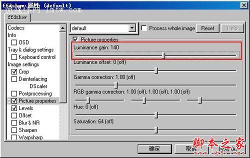 可以在“picture property”和“level”里設置。前者相當于avs中的tweak慮鏡,增加相當于前景的亮度,可調度較大,一般設置在140-170之間,有的片子甚至要到200才能增加亮度。后者在avs里即level慮鏡,增加相當于背景的亮度,可調度較 小。一般1.3-1.5之間。壓制是用一個即可!一般建議用前者