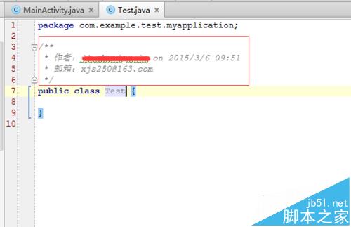 5、然后在android studio中新建一個類Test,可以看到自動添加了注釋。