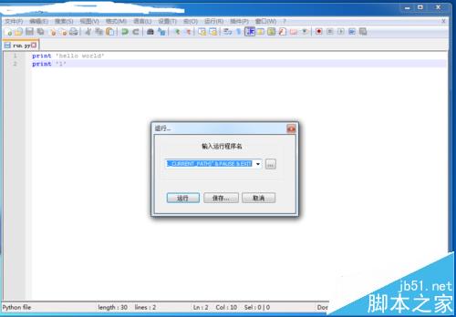 8、當然我們也可以自己設置一個快捷鍵,敲好代碼后,按F5,會彈出運行對話框,在對話框中輸入:cmd /k c:/python27/python "$(FULL_CURRENT_PATH)" & PAUSE & EXIT