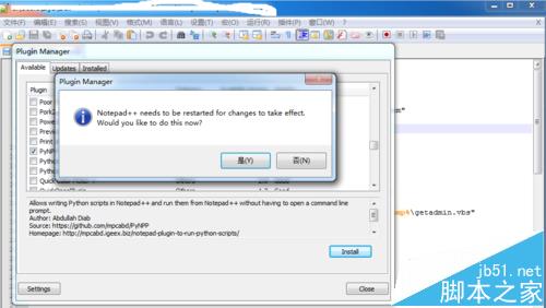 4、配置結束后會提示重啟Notepad++,當然要點擊restart