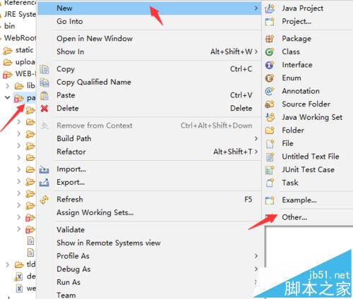 現在做JavaWeb研發常用的工具有myEclipse、Eclipse、IDEA等等,由于myEclipse消耗的內存較大,我一般用的是Eclipse。在Eclipse工作空間某個項目上點擊存放頁面的文件夾右鍵-》new-》other(由于Eclipse默認不是用來做WEB研發的,所有JSP在other里面)。