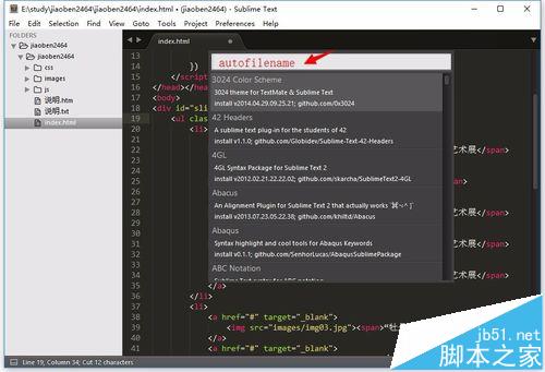 剛開始使用sublime text 3的時候,你也許會發現,給某個img寫src路徑時候,并沒有彈出提示,不得不讓你手動去本地文件夾找文件。其實sublime text 3是很強大的編輯器,但它很多功能都需要添加插件才能完善。包括這個文件路徑。下面小編簡單介紹下怎么樣讓img src有文件路徑提示。