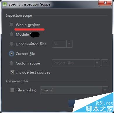 4、在對話框里面我們可以選擇lint掃描整個項目,也可以掃描指定目錄。之后 Studio會自動分析,然后可以根據結果清除無用的資源文件。掃描結果會出現在下方