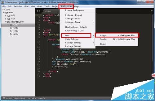 3、開(kāi)始調(diào)整,點(diǎn)擊菜單欄“preferences”——“font”——“larger”;