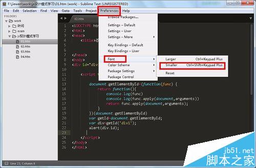 6、如果想變小字體,就相反的操作“preferences”——“font”——“smaller”