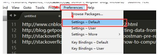 1、首先進(jìn)入系統(tǒng)默認(rèn)的設(shè)置屬性文件中,操作:菜單Preferences --> Settings Default