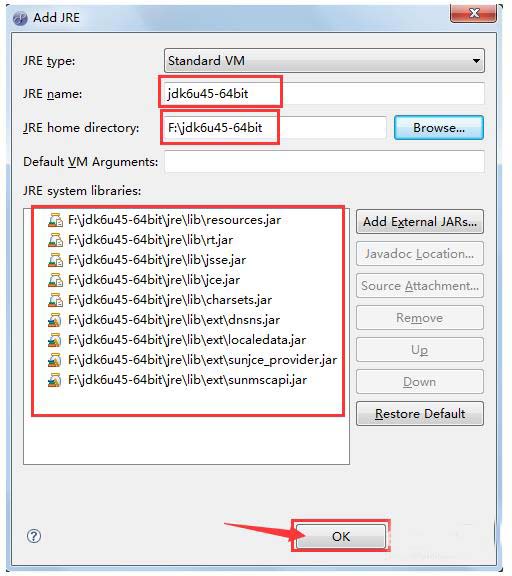 5、經(jīng)過上一步后可以發(fā)現(xiàn),Add JRE窗口中已經(jīng)自動變成了如圖所示,這里只需點擊 OK 按鈕