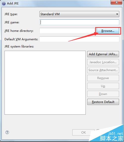 3、在Add JRE窗口中,點擊 Browse...,尋找jdk1.6所在目錄