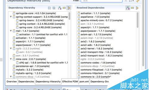 5、結(jié)果我又想,難道是版本問(wèn)題,結(jié)果把錯(cuò)誤往百度一粘,搜了下發(fā)現(xiàn)確實(shí)有人說(shuō)是版本或包沖突問(wèn)題;結(jié)果我就檢查依賴關(guān)系,讓多數(shù)類庫(kù)依賴同一版本的類庫(kù)。