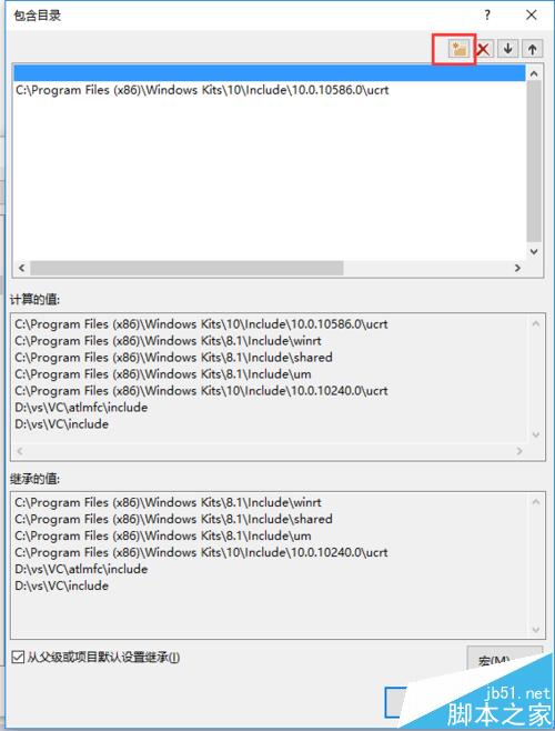 4、這里的地址默認在:C:/Program Files (x86)/Windows Kits/10/Include/10.0.10586.0/ucrt,添加上就解決了缺失包含文件stdio.h,ctype.h的問題,