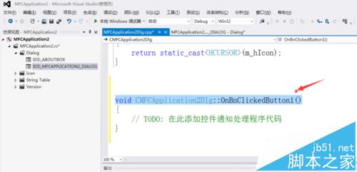 7、添加完后在對話框上雙擊計算按鈕,就會生成相應的消息映射,進入如下代碼中,見下圖