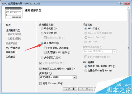 2、建立基于對話框的標準程序,如下圖所示,其余設置采用系統設置,點擊完成
