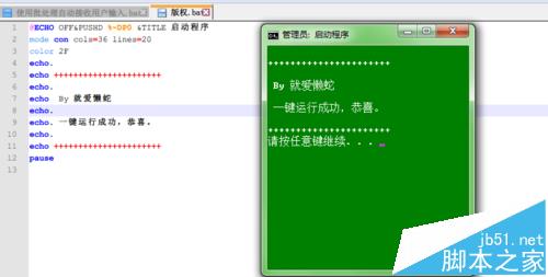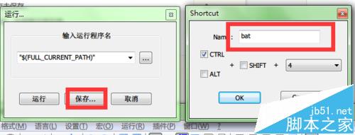 6、notepad++寫好代碼之后,點擊運行菜單,選中bat。或者直接按ctrl+4組合鍵快速運行批處理。