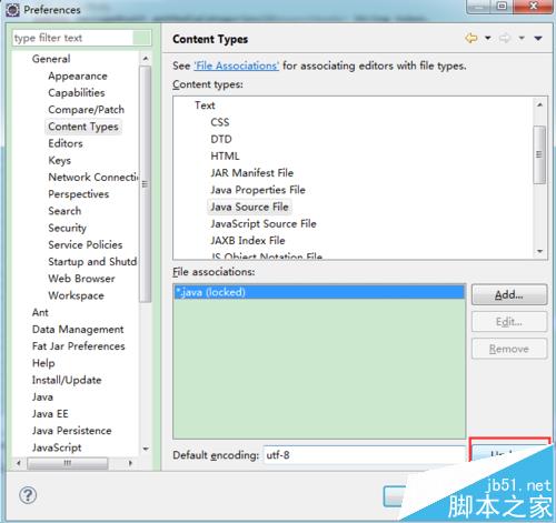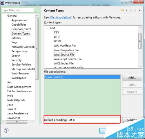 6、然后在Default encoding處填上自己需要的編碼,這里舉例【utf-8】,然后點擊【Update】即可修改所有的文件為自己指定的編碼