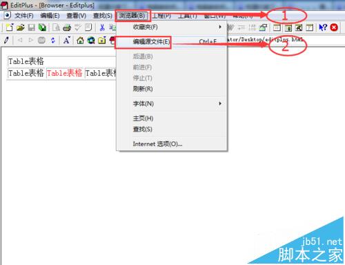 5、如果要返回進行HTML代碼編輯或者修改,則點擊菜單欄的瀏覽器,然后選擇:編輯源文件項;或者直接按下Ctrl+E快捷鍵。