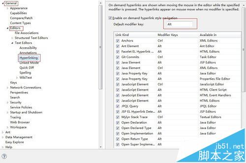 2、依次展開:General>Editors>Text Editors>Hyperlinking