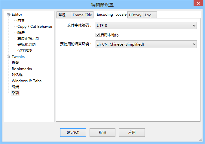 1.從菜單【設置->全局編輯器偏好】進入編輯器設置頁面,選擇【雜項->Encoding Locale】,設置文件字體編碼為UTF-8,然后點【應用】。